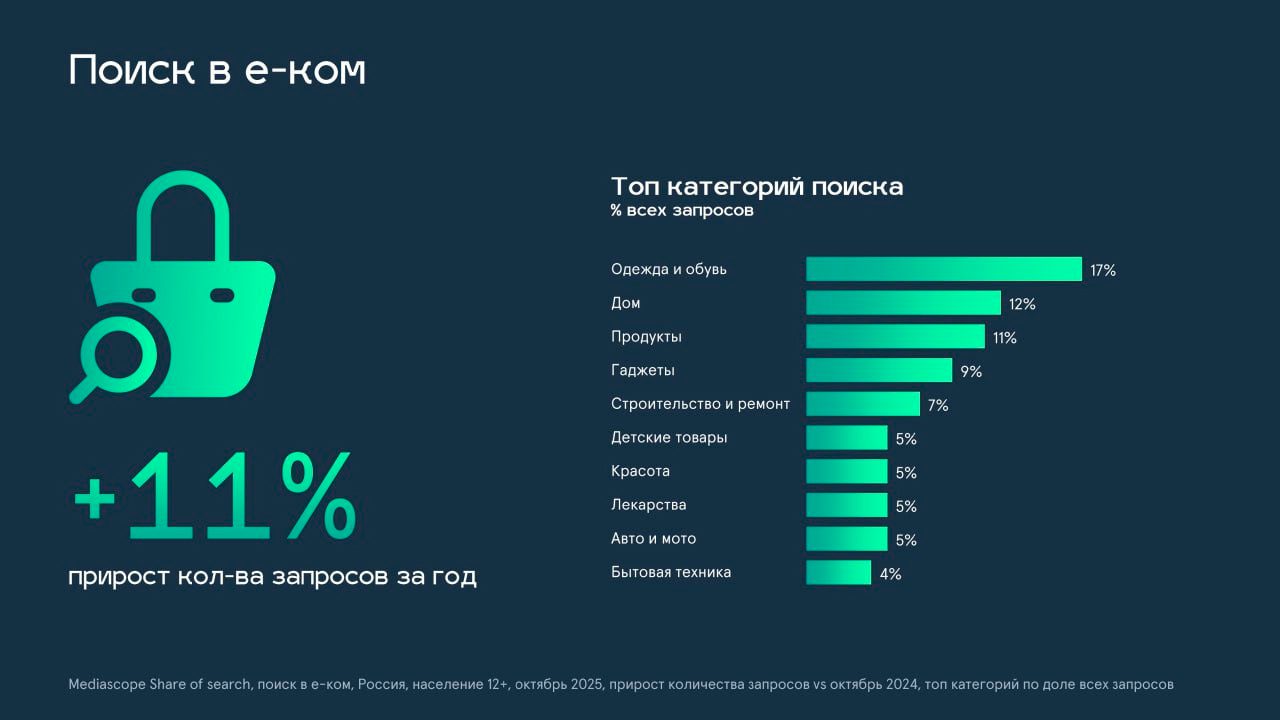 Самые популярные категории в поиске товаров – одежда и обувь, дом, продукты, гаджеты и товары для стройки и ремонта.