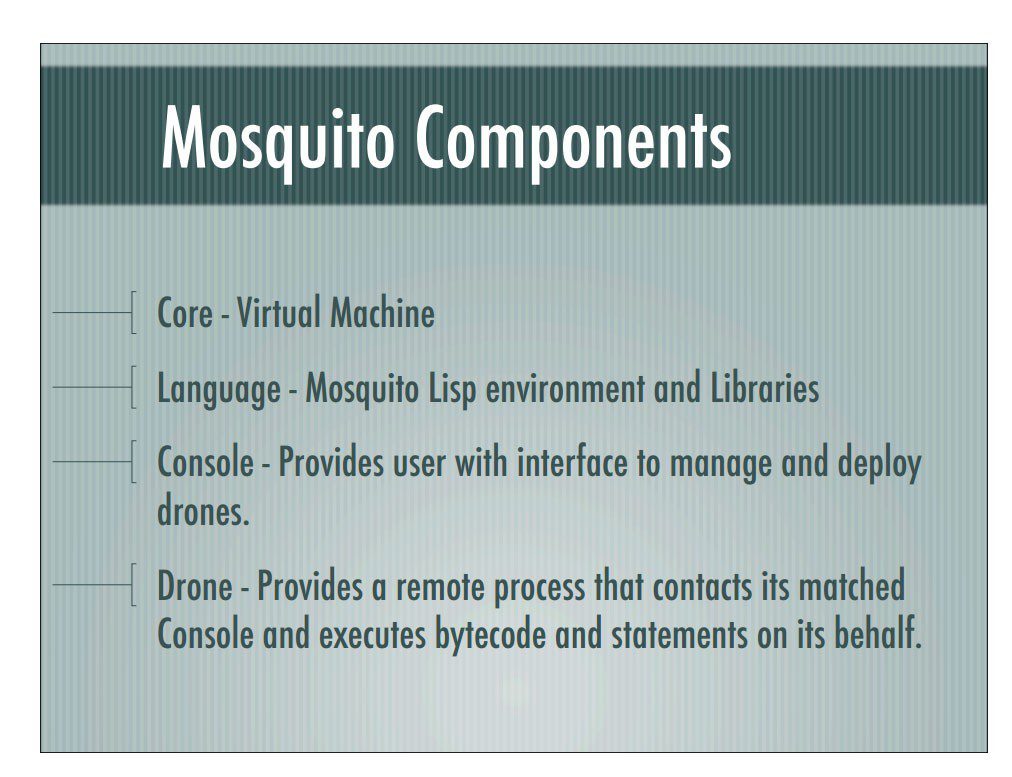 «Мало того, что программа может скрыть сам факт кражи информации, ее методы шпионажа могут быть удаленно обновлены, выключены, а также повторно запрограммированы через кодируемое подключение к серверу командования и управления – «эквивалент in-flight drone repair», — объясняет Браун. Презентация в 2005 году программы «Москит» (Mosquito) стала одной из самых популярных на престижной хакерской конференции, известной как Def Con, в Лас-Вегасе.