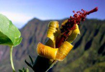 Hibiscadelphus woodii, родственник гибискусов, был обнаружен на острове Кауаи (Kauai; наиболее...