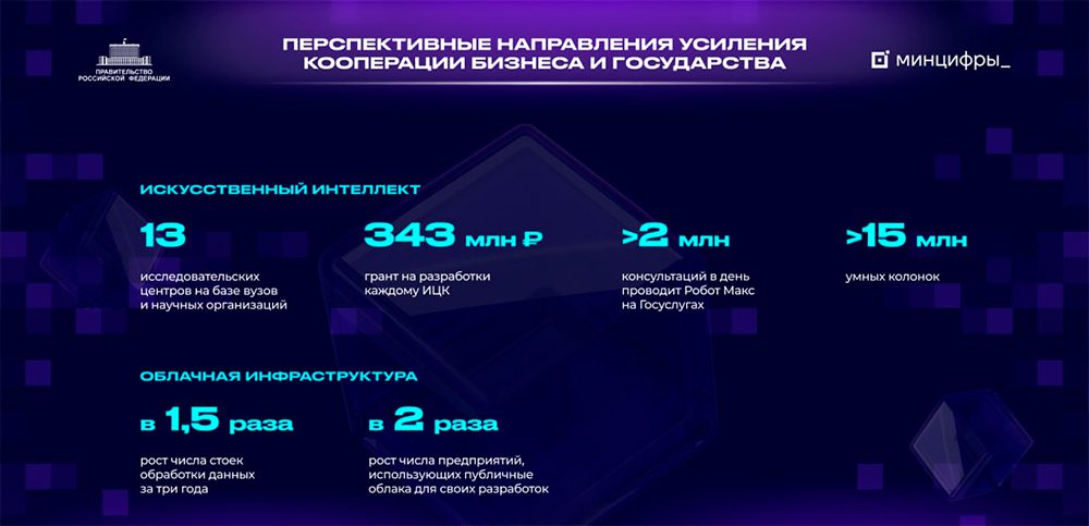 Такие технологии, конечно, нужны для опережающего выпуска прорывных решений в области искусственного интеллекта. Это четвёртое направление для усиления кооперации государства и бизнеса.