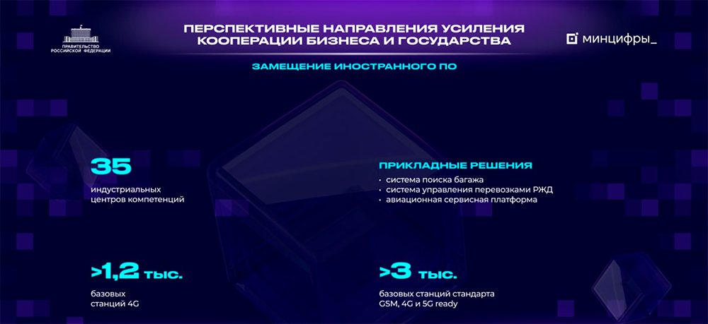 Стало выпускаться больше востребованных и конкурентоспособных продуктов. Это российские операционные системы, в том числе для мобильных устройств, системы управления базами данных, центры обработки данных и ряд важных офисных решений для корпоративных коммуникаций, для программно-аппаратных комплексов, цифровые ассистенты, ассистенты и агенты искусственного интеллекта и многое другое.