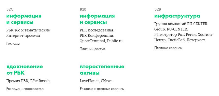 Судя по финотчету РБК за 2014 год, выручка второстепенных активов за год упала на 35%, составив 450 миллионов рублей (по сравнению с 688 миллионами в 2013 году).