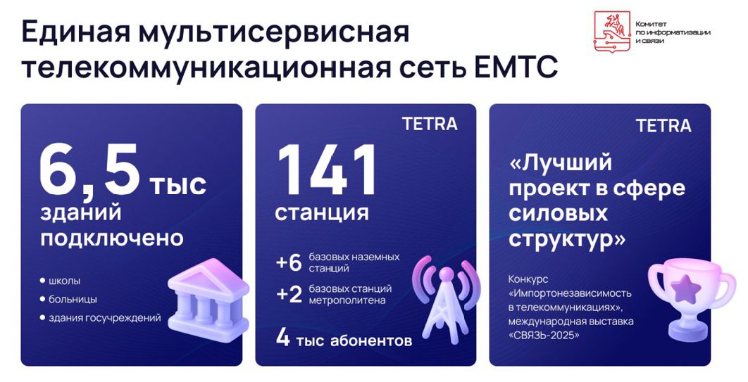 В апреле проект, посвящённый созданию единой сети оперативной транкинговой радиосвязи стандарта TETRA для решения городских задач на базе российского оборудования «МиниКом TETRA», победил в номинации «Лучший проект в сфере силовых структур» отраслевого конкурса «Импортонезависимость в телекоммуникациях», прошедшего в рамках 37-й международной выставки «Связь-2025».