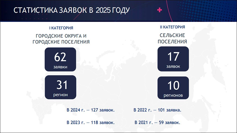 В конкурсе участвуют муниципальные округа, городские округа (городские округа с внутригородским делением) и городские поселения (I категория); сельские поселения (II категория). В этом году в конкурсе приняли участие представители городских округов и сельских поселений из 31 региона России.
