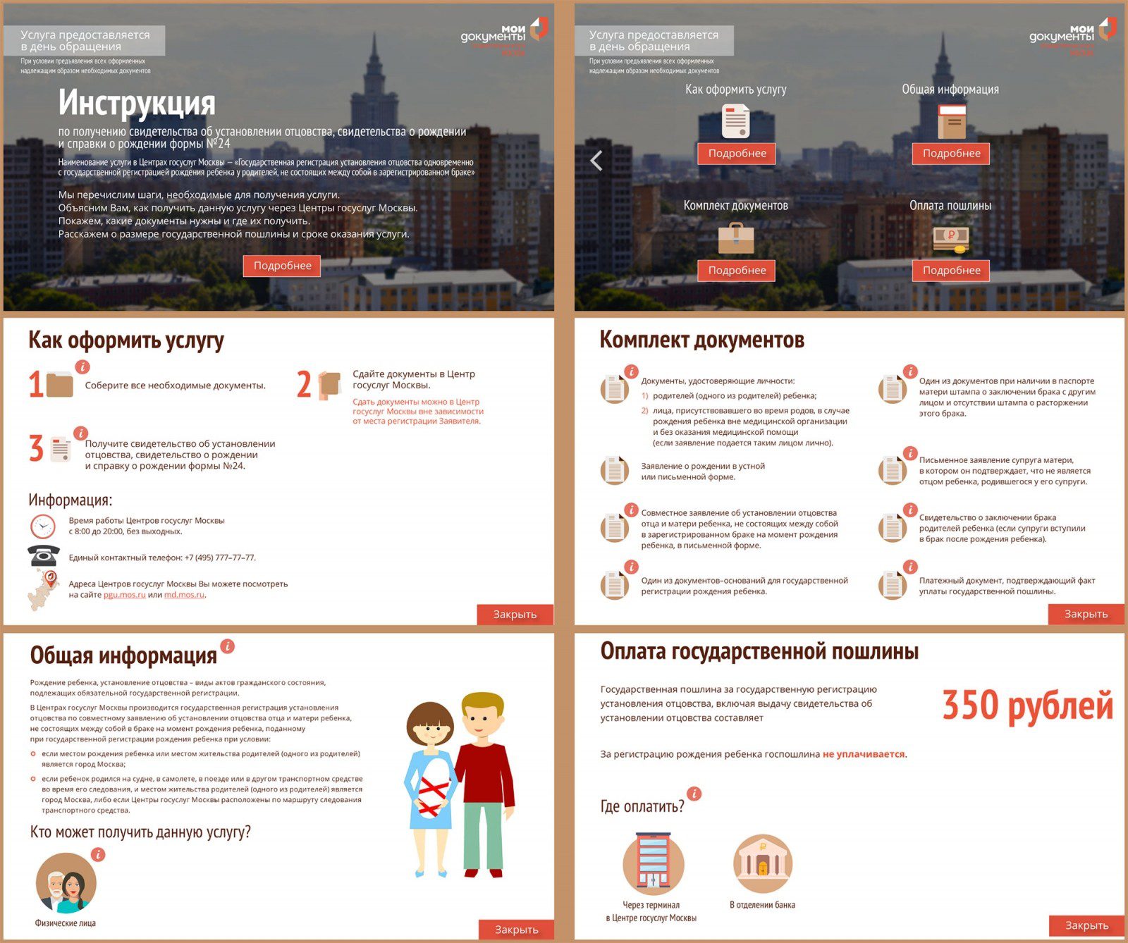 Среди них – инструкции по регистрации рождения и смерти, установлению отцовства, получению полиса ОМС нового образца и социальной поддержки по оплате ЖКУ, предоставлению сведений из ЕГРП, отказа от радиоточки и другие.