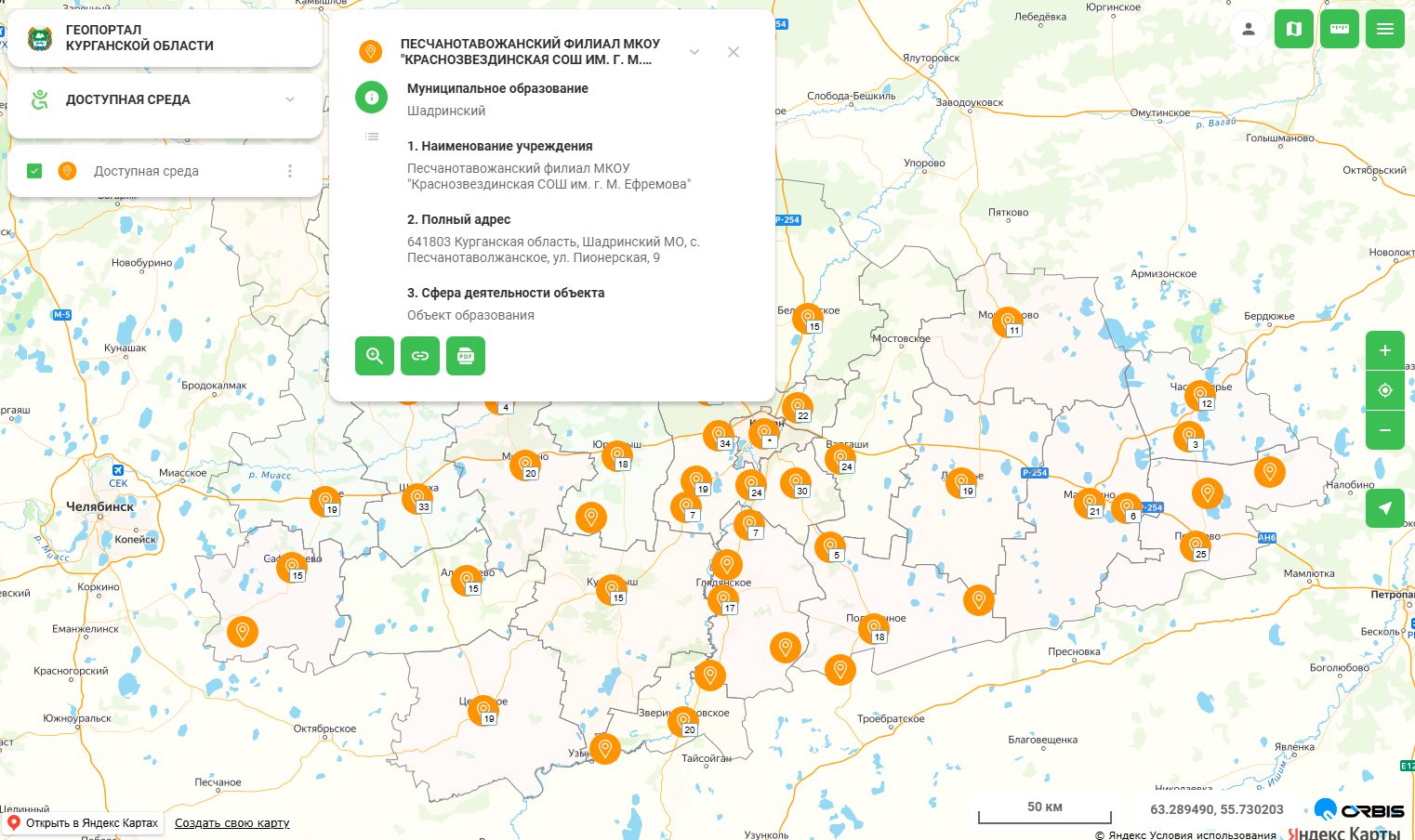 Сейчас сервис располагает данными о 1154 объектах, каждый из которых отмечен на карте Курганской области и сопровождается подробным описанием. Это помогает людям с ограниченными возможностями легче находить необходимые учреждения и получать помощь. База данных будет регулярно обновляться, говорится в сообщении.