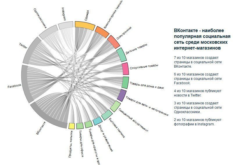 Московский онлайн-ретейл довольно активен в социальных сетях – аккаунты хотя бы в одной из них есть у 68% магазинов, сказано в отчете. Наиболее популярная среди торговцев социальная сеть – «ВКонтакте», на втором месте – Facebook. Сервис Instagram особенно популярен среди магазинов одежды – 60% из них ведут аккаунт в этой сети. «Одноклассники» популярны среди детских магазинов – в ней представлены почти 45% из них. При этом детские магазины лидируют по объему трафика из соцсетей и со специализированных форумов.