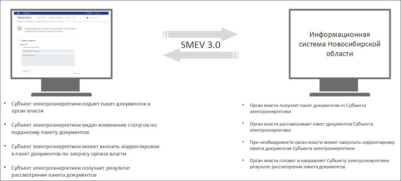 Как пояснили в департаменте, кроме самой ИС разработан также сервис взаимодействия с концентратором услуг; зарегистрирован участник СМЭВ 3.0 (Министерство ЖКХ и Энергетики Новосибирской области) и получен доступ к видам сведений СМЭВ 3.0 (заявление на утверждение инвестиционной программы субъекта электроэнергетики; отчет о реализации инвестиционной программы субъекта электроэнергетики). Сейчас идет тестирование с тестовой средой Концентратора услуг (beta.gosuslugi.ru).