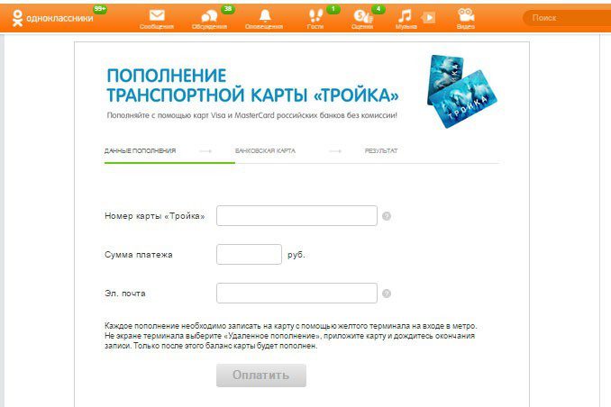 Приложение для пополнения счета карты «Тройка» с помощью банковской карты появилось в соцсети «Одноклассники». Услуга будет доступна как для десктопной, так и для мобильной версии соцсети, комиссия за услугу не берется, говорится в сообщении Ok.ru.