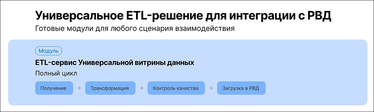 1. Прямое подключение. Данные из информационных систем передаются в ETL-сервис и затем загружаются в УРВД.