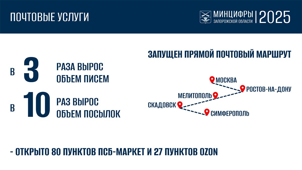 В 2025 году нам удалось сохранить всю сеть почтовых отделений в Запорожской области и избежать кассового разрыва благодаря поддержке как регионального, так и федерального бюджетов. Сегодня «Почта Таврии» – это 279 стационарных и 11 передвижных отделений, в которых трудятся более 800 сотрудников.