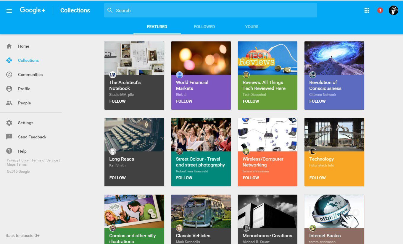 Важнейшими компонентами станут «сообщества», в которых люди будут объединяться по интересам, и «коллекции», предназначенные для хранения изображений и видеоматериалов по той или иной теме. «Новый вариант Google+ будет гораздо проще, – заявила компания в своем блоге. – Кроме того, он более дружествен к пользователю, мы перестроили продукт в расчете на Интернет, Android и iOS, так что все будет работать быстро и единообразно».
